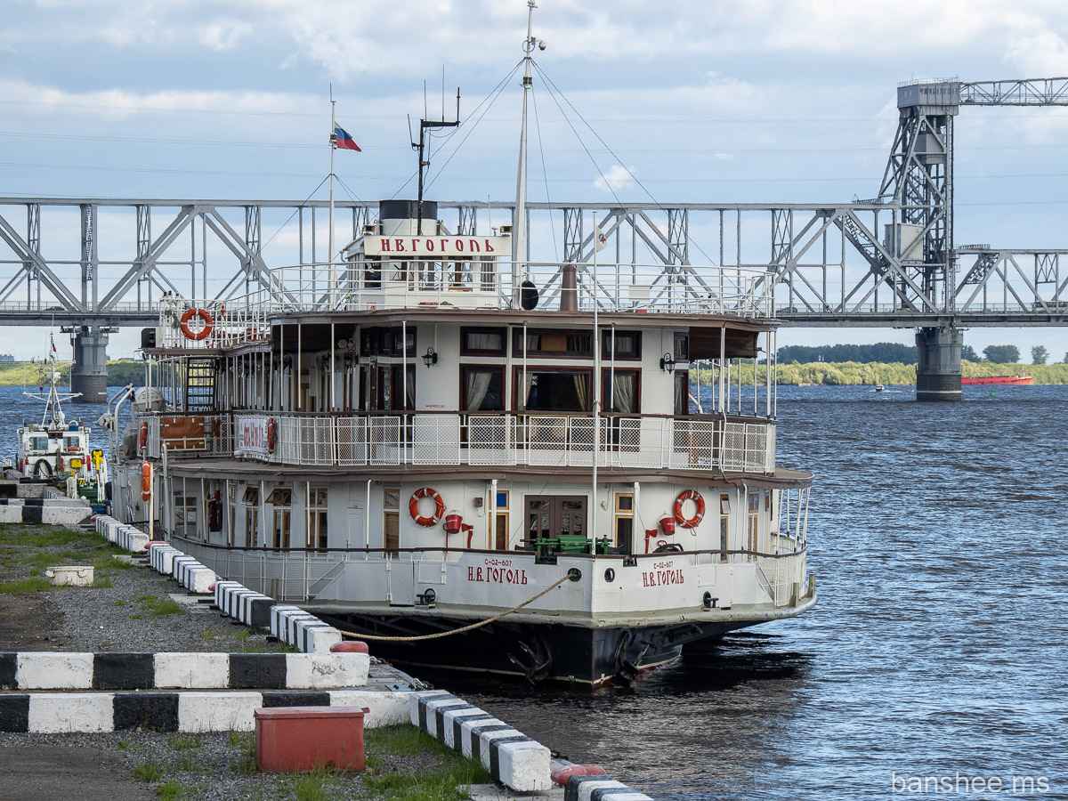Пароход «Н. В. Гоголь» — одна из достопримечательностей Архангельска. Поскольку с круизом у меня не прокатило, хотелось хотя бы на этом покататься. Про покатушки чуть позже, а тут немного о самом судне. Оно двухпалубное с прогулочной палубой «на крыше».
