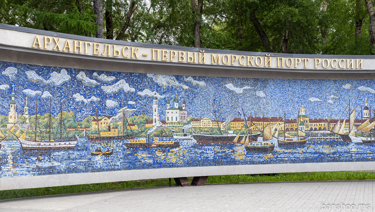 На Архангельск у меня не было конкретных планов, кроме как покататься на самом старом в России пароходе. Так что по городу я ходил бесцельно и не очень далеко. Прошелся по набережной да немножко по «центральным» улицам. Так что связного рассказа не будет, только разрозненные картинки из прогулок.
