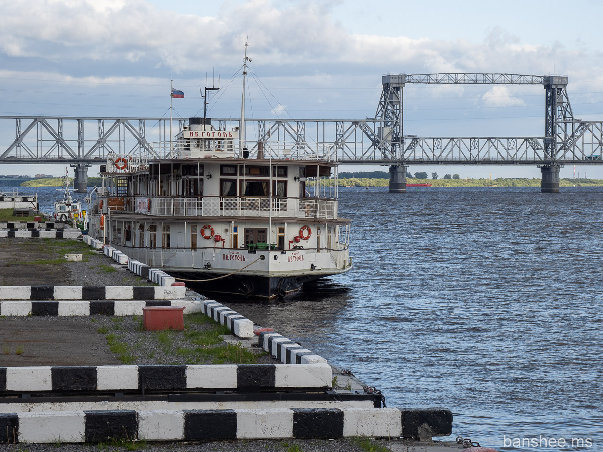 Пароход «Н.В. Гоголь» на фоне того же моста. Самое старое пассажирское судно в России из тех, что на ходу — построен в 1911 году.
